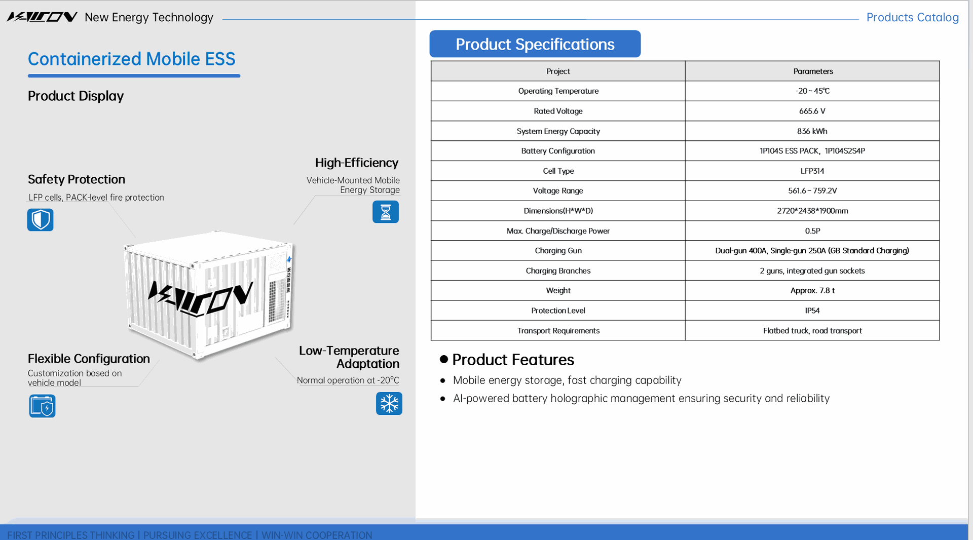 • モバイル型エネルギー貯蔵に対応し、急速充電が可能